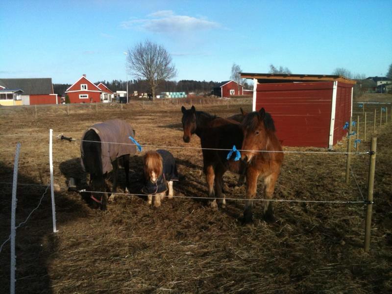 Flocken, som består av ett halvblodssto f-12, en shettis f-10 och ett ardennersto f-12, tog emot